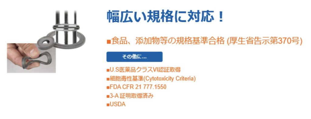 ・FDA,3A,USDA,CGMP,ASME-BPE,ADIフリー等